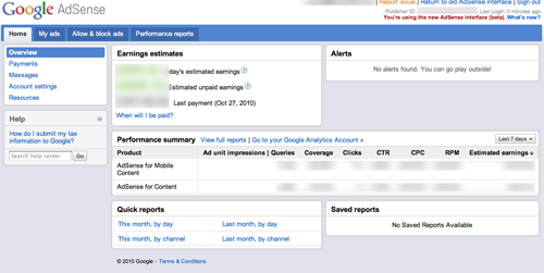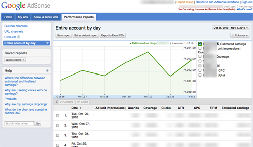 Earlier today we received a tip from a source that Google has begun to beta test a new user interface for Google AdSense. Doing some basic research, I noticed the first mention of this new interface last week by Justin Germino of Dragon Technology Blog. I can’t find any mention of the new user interface on the Google AdSense blog – although a post about blocking categories does display the new interface.Here are some screen-shots of the new Google AdSense interface. It looks and functions in the same fashion as Google AdWords and appears to be a good upgrade from the current version which, I believe, has been in place since the early days of Google AdSense.