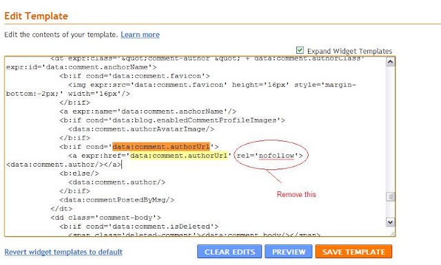 Dofollow links are of high importance than nofollow links in the eyes of search engines. You can make your blogspot blogger dofollow by simple removing nofollow tag at your comments sections. Here how to do this